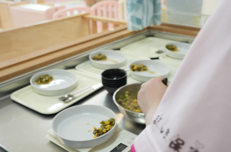 給食の配膳や食事のサポートをしながら、子どもたちの食育にも関わります。 -